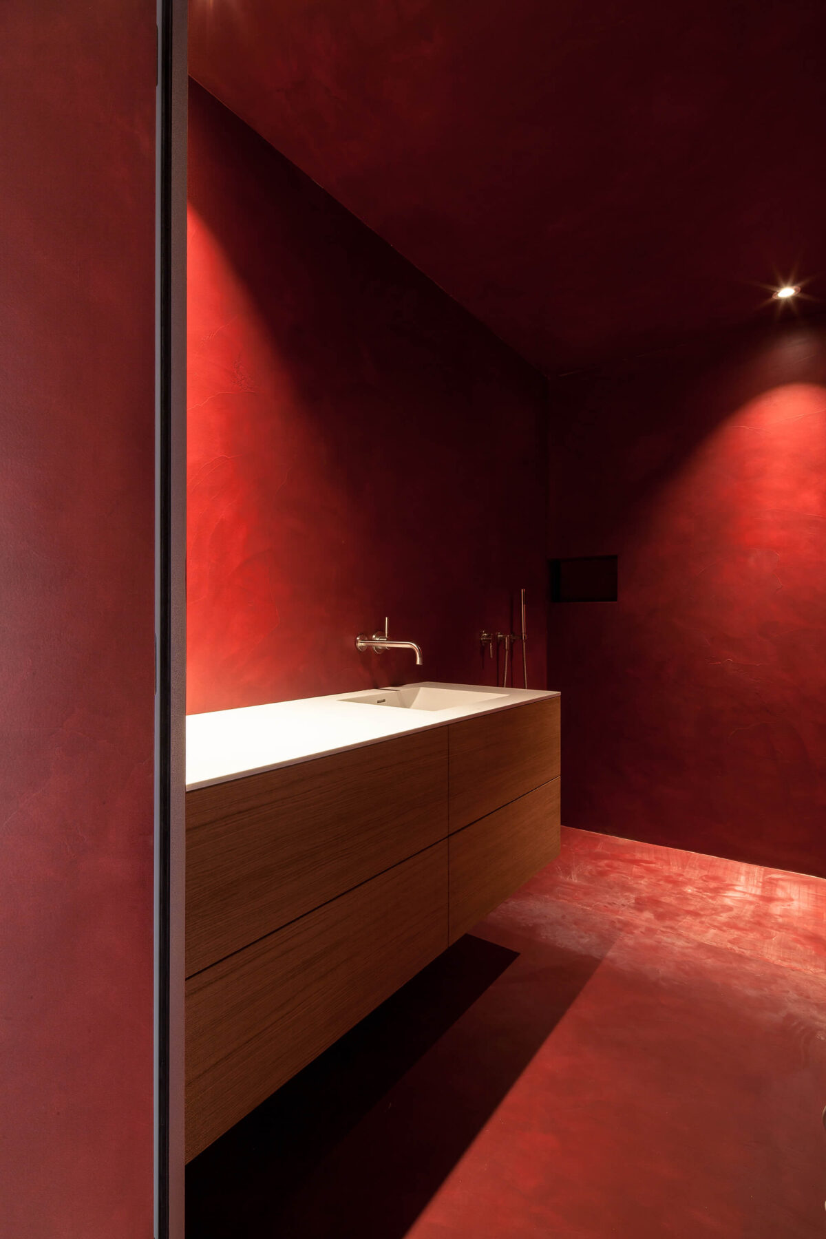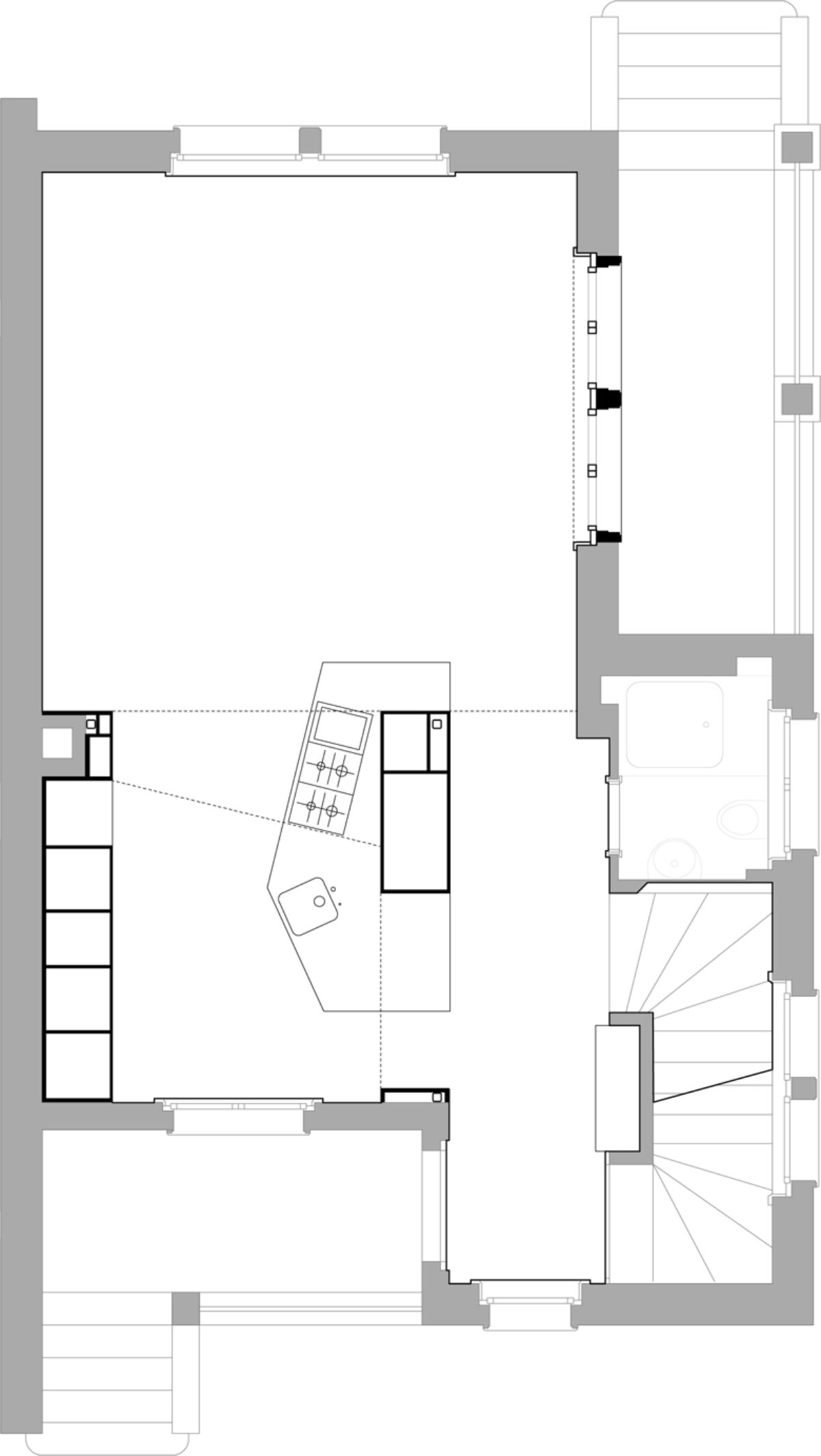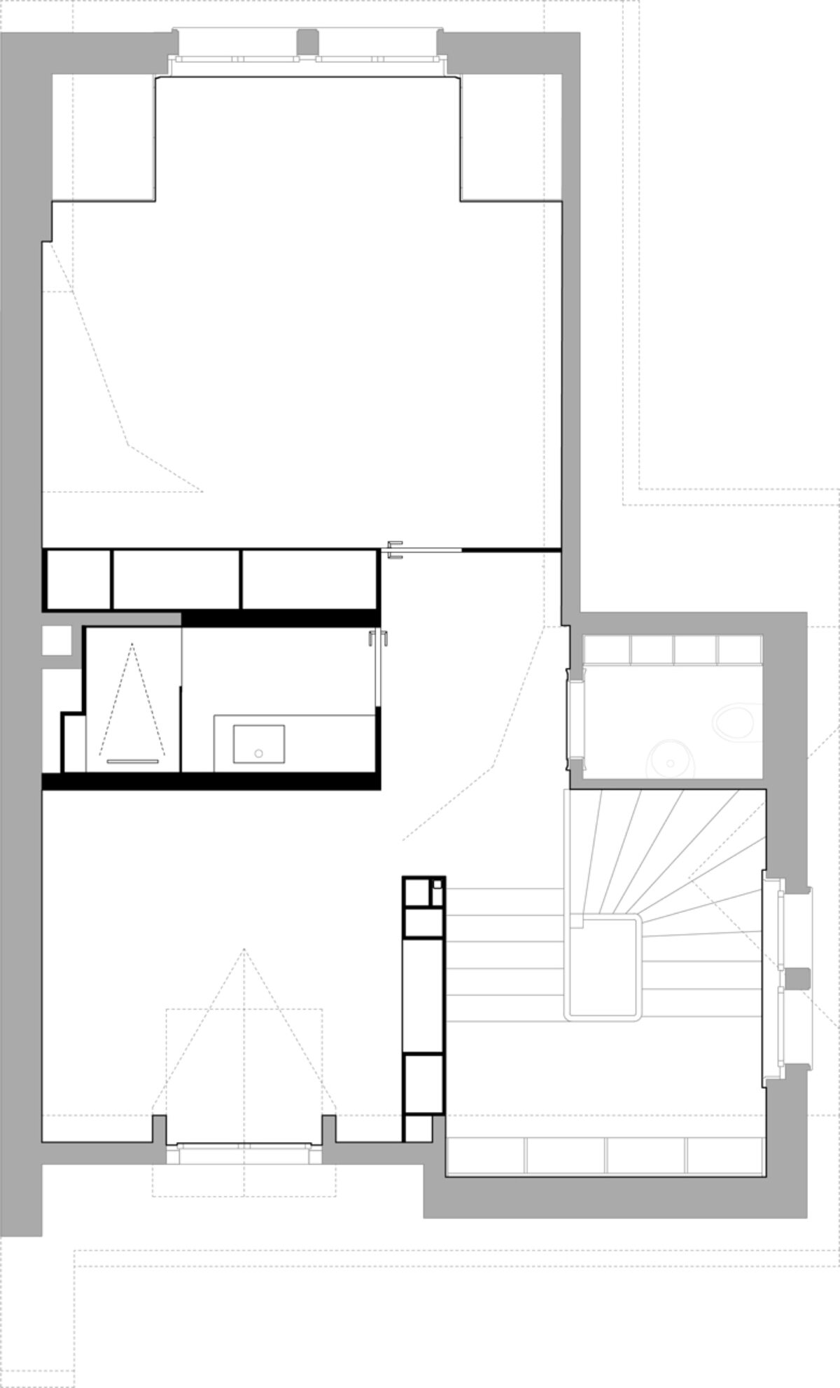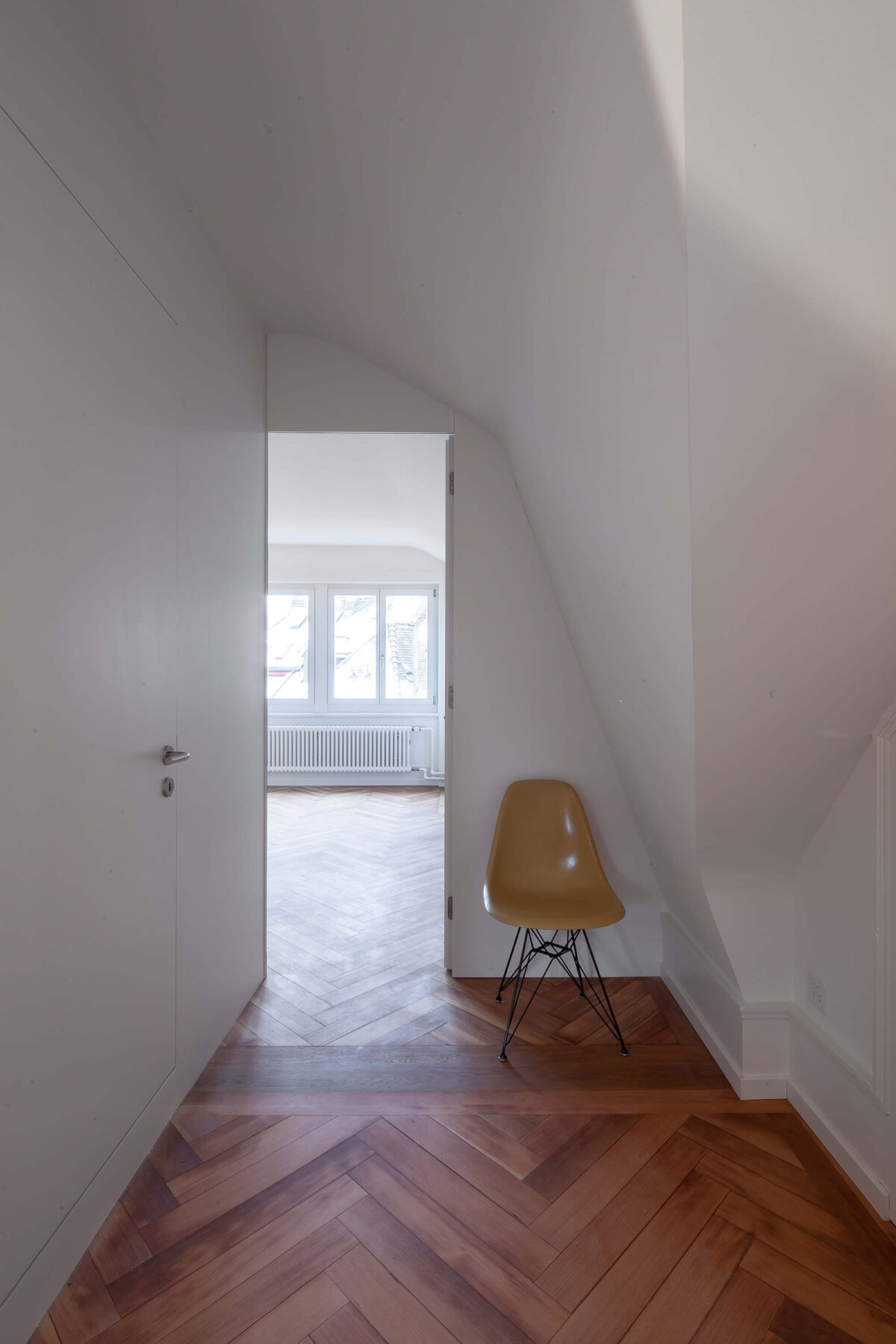 Das denkmalgeschützte Reiheneinfamilienhaus im Liebeggquartier in Bern, wurde in Zusammenarbeit mit der kantonalen Denkmalpflege einer sanften Sanierung unterzogen. Die Küche im Erdgeschoss wurde zum Esszimmer hin geöffnet und zur Wohnküche ausgebaut. Ein Deckenversatz zeugt von der ursprünglichen Raumaufteilung. Durch das leichte Einschieben des Küchenkörpers in den Essbereich werden die beiden Räume funktional verbunden und ergänzen sich zu einem Ganzen. Im Dachgeschoss wurde durch das Einfügen eines „Duschenmöbels“ die Raumaufteilung neu organisiert. Die zusätzlich eingefügte Schicht, trennt nun das Lesezimmer und das Treppenhaus vom privaten Schlafzimmer.