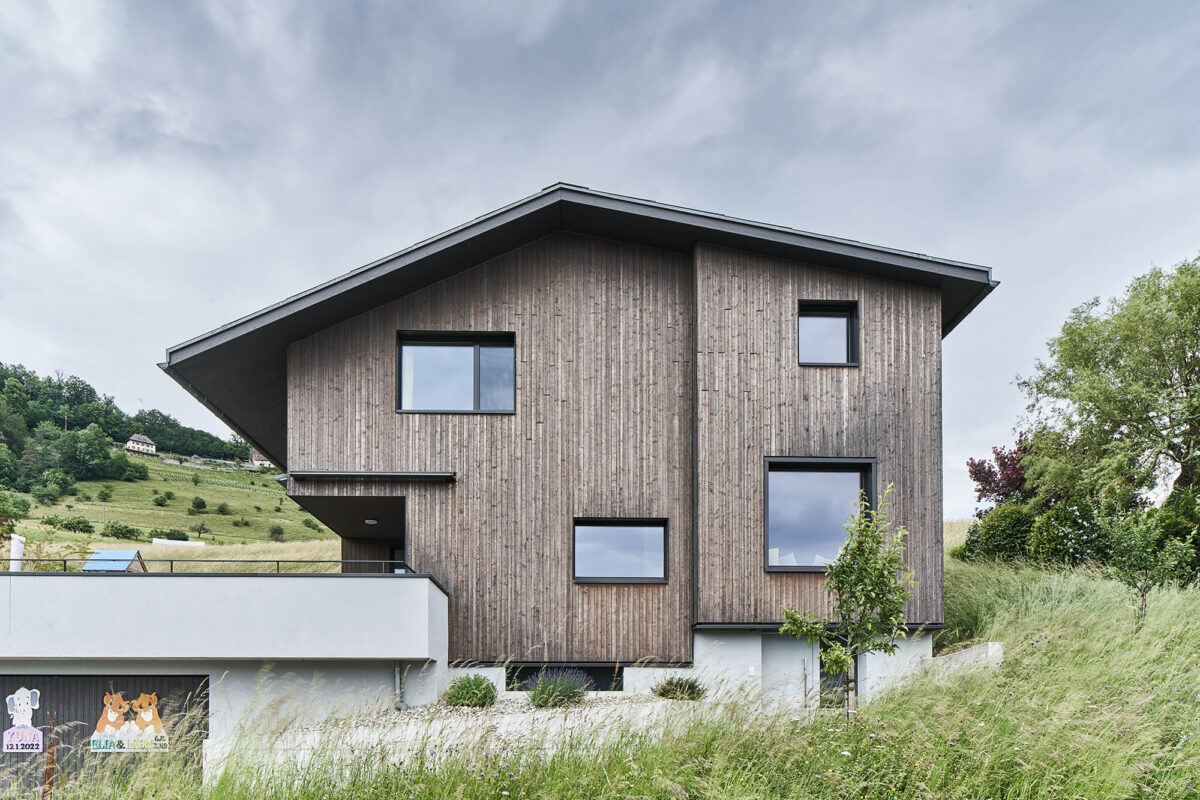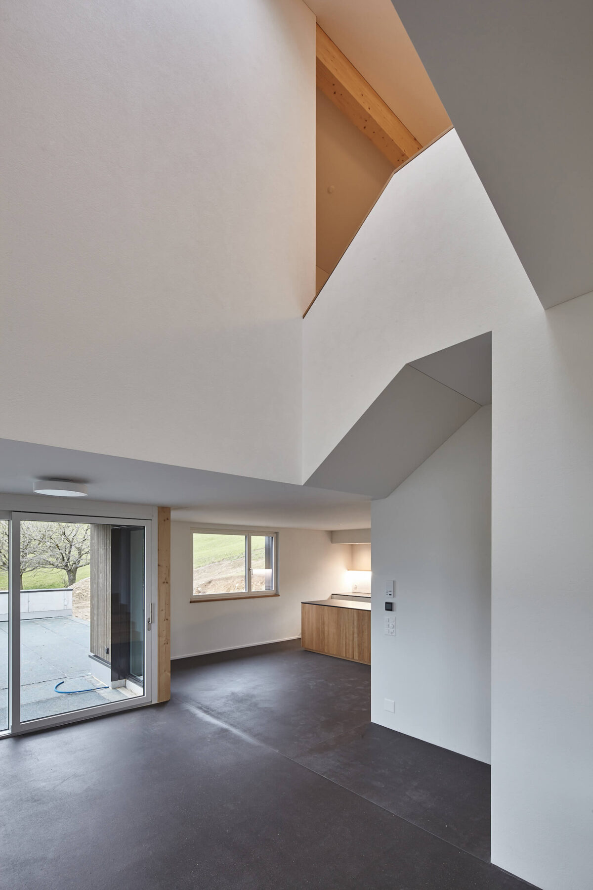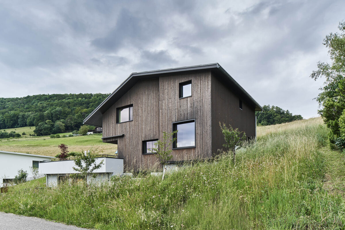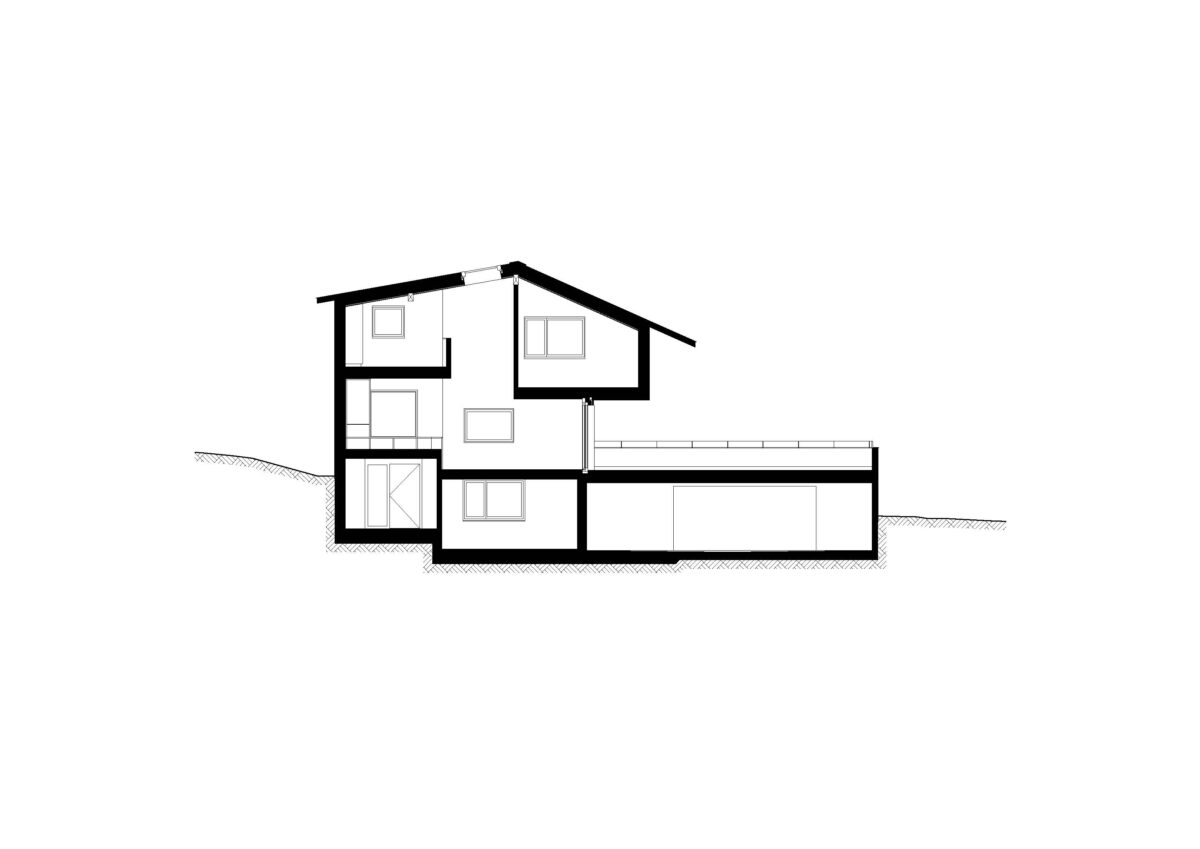Das gut besonnte Hanggrundstück in Lostorf bietet zwar eine sehr attraktive Wohnlage, erschwert jedoch aufgrund der starken Neigung und der vorgeschriebenen niedrigen Gebäudehöhe die Bebauung. Um diesem Umstand Rechnung zu tragen, wird das gesamte Gebäude in Splitlevels organisiert. Dies ermöglicht ein harmonisches Einweben des Neubaus in den Hang und eine optimale Belichtung der Wohnräume sowie einen allseitigen Aussenraumzugang.