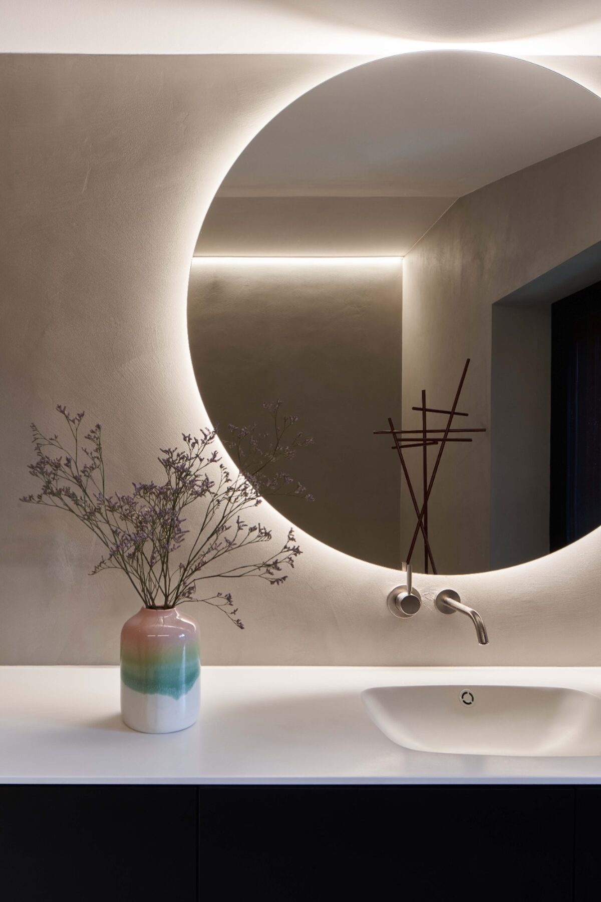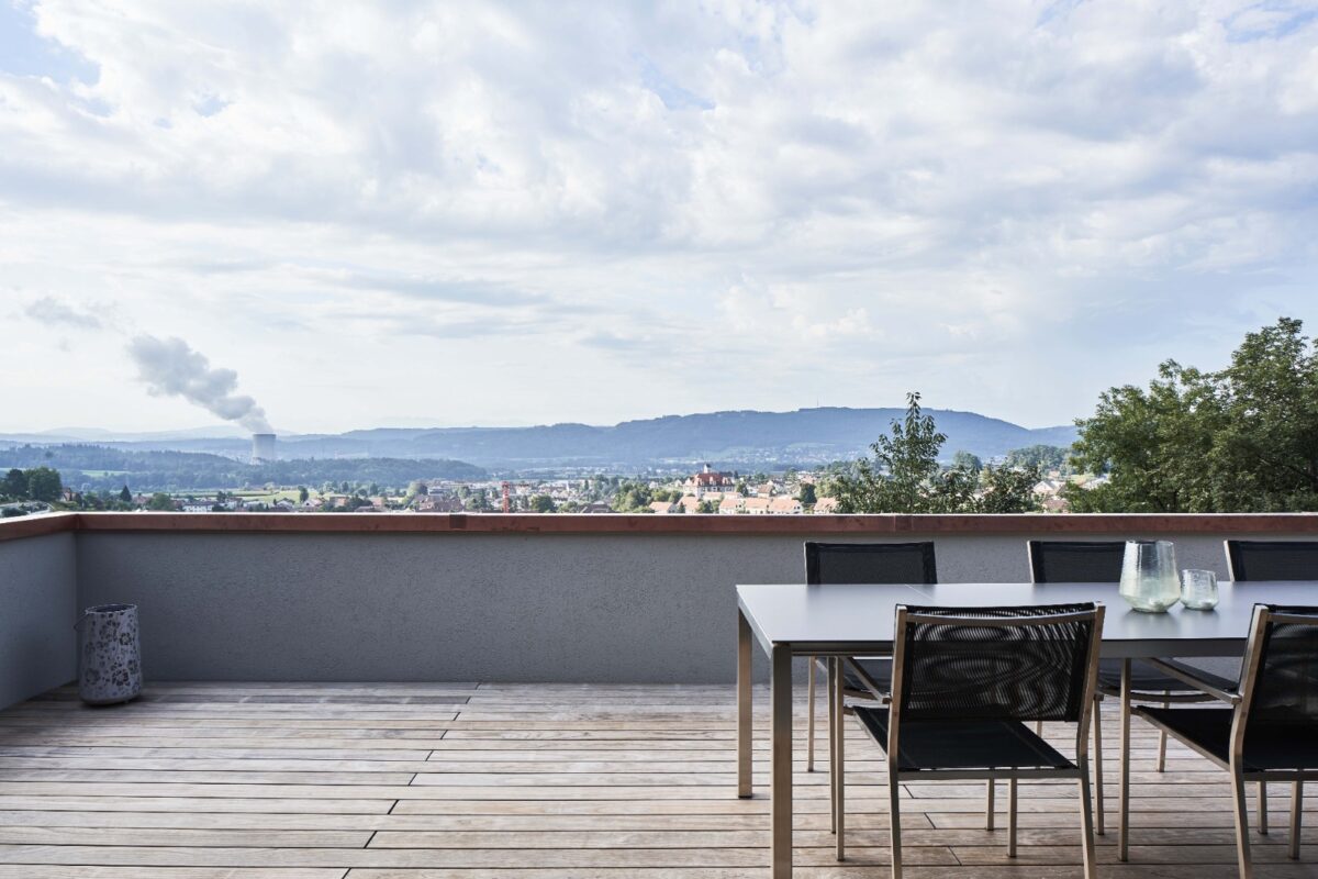 Die komplexe energetische Sanierung und teilweise Freilegung des Untergeschosses ermöglichte eine neue Betrachtungsweise der postmodernen Ausdrucksform. Es wurden neue Ausenraumqualitäten geschaffen, welche in einer ständigen Wechselbeziehung mit dem Innenraum stehen.
